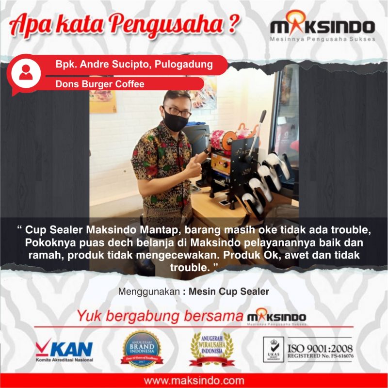 Dalam usaha minuman, kemasan yang bagus sangat penting untuk menjaga kebersihan, keamanan, dan kualitas produk. Salah satu alat yang menolong mencapai tujuan tersebut adalah mesin cup sealer. Mesin cup sealer merupakan mesin yang digunakan untuk mengemas minuman dalam cup dengan cara menutupnya secara rapat menggunakan segel plastik. Salah satu mesin cup sealer yang banyak dikenal ialah Mesin Cup Sealer Manual CPS-818 dari Maksindo.