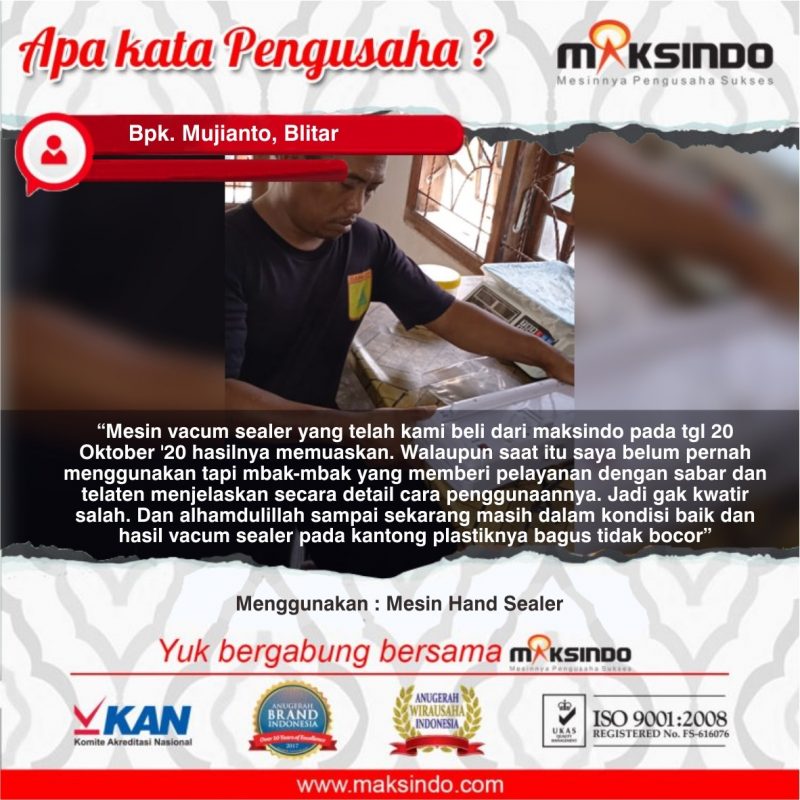 • Dukungan Purna Jual Terjamin: Maksindo dikenal dengan pelayanan konsumen yang handal. Mereka memberikan layanan teknis, suku cadang, dan garansi yang memastikan mesin ini tetap berfungsi dengan baik dalam jangka panjang.10 Manfaat bagi Konsumen dengan Memakai Mesin Hand Sealer FS-600 Maksindo.