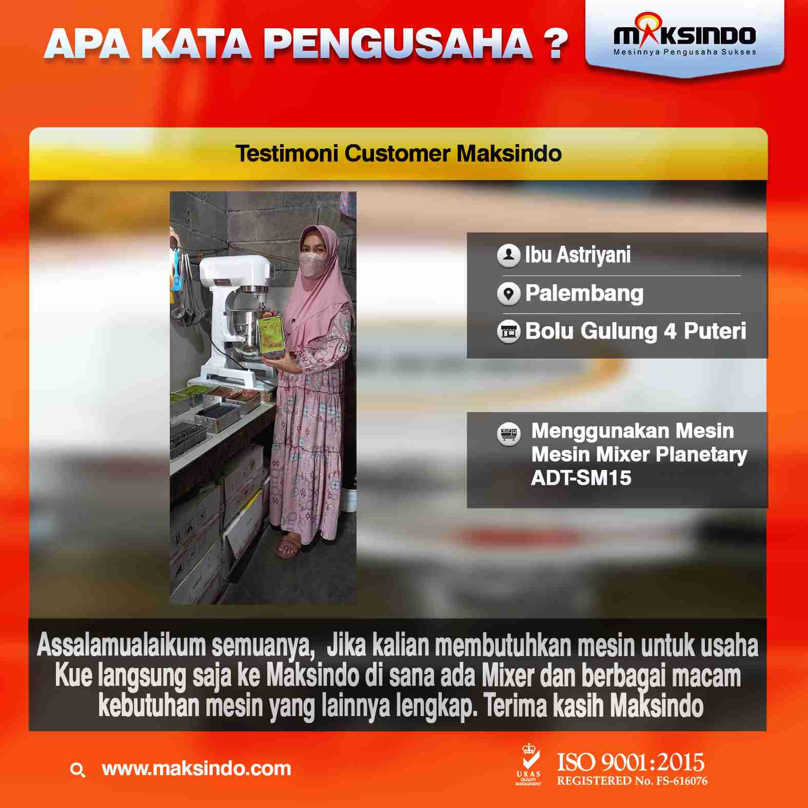 Pada dunia usaha roti dan bakery, kualitas adonan yang konsisten dan sempurna ialah salah satu faktor kunci utama dalam menghasilkan produk roti yang lezat dan berkualitas tinggi. Dalam upaya memenuhi kebutuhan tersebut, mesin mixer roti semakin menjadi pilihan utama bagi para pembuat roti dan pengusaha bakery. Salah satu mesin mixer roti yang best seller ialah Planetary Arditek ADT-SM15 dari Maksindo. Mesin Mixer Roti 15 Liter Planetary Arditek ADT-SM15 Maksindo yaitu sebuah mesin yang dibuat khusus untuk memudahkan pengolahan adonan roti dalam skala kecil hingga menengah.
