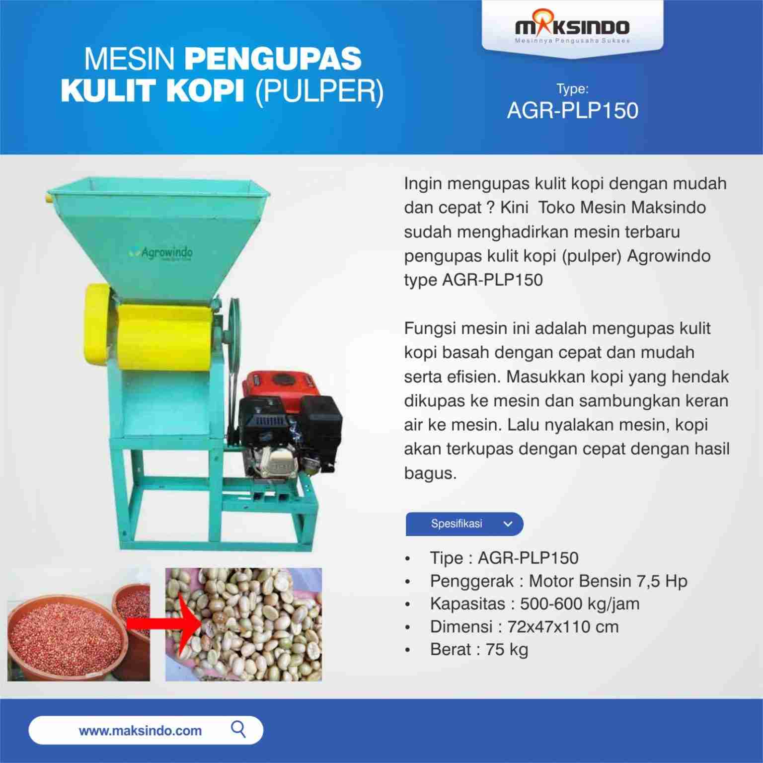 Mau mengupas kulit kopi dengan mudah dan efisien? Sekarang Toko Mesin Maksindo mempersembahkan mesin terbaru pengupas kulit kopi Agrowindo type AGR-PLP150.