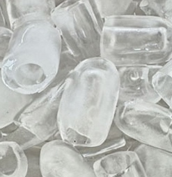 Bentuk dari es batu ini adalah bentuk tube. Bentuk tabung dengan di tengah ada lubang.